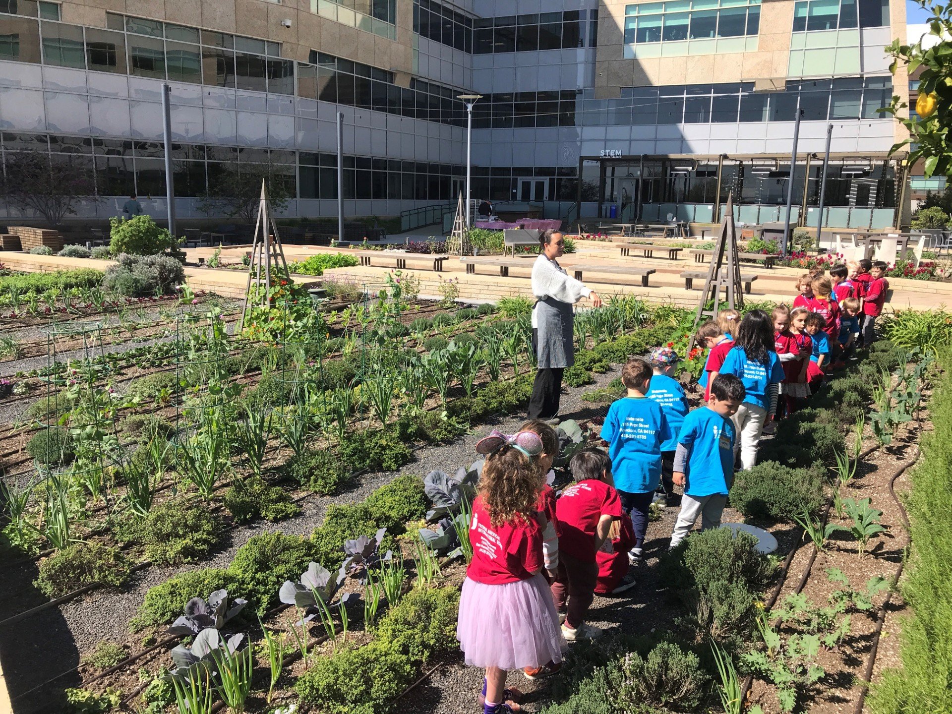 The garden also serves as a hands-on classroom for our Healthy Kids program. Students explore the space to taste, touch, and learn about garden-fresh fruits, vegetables, herbs, and edible plants. Working alongside STEM’s chefs, kids get a full-circle experience—seeing where food comes from, how the food grows, learning how to prepare it safely, and discovering the joy of healthy eating.